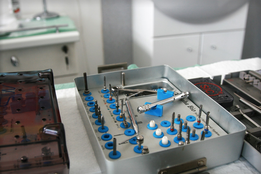 After a local anesthesia, a little incision is made into the gum. Drills of different diameters are used to drill successively, making place to a titanium implant bolt. After inserting the implant, the gum will be sutured. The implant will remain into the bone, covered by the gum, allowing this way its integration. The cure period is estimated between a few weeks up to six months. One week after the surgery, a control will be made, to evaluate the cure process and to remove the suture wires. -